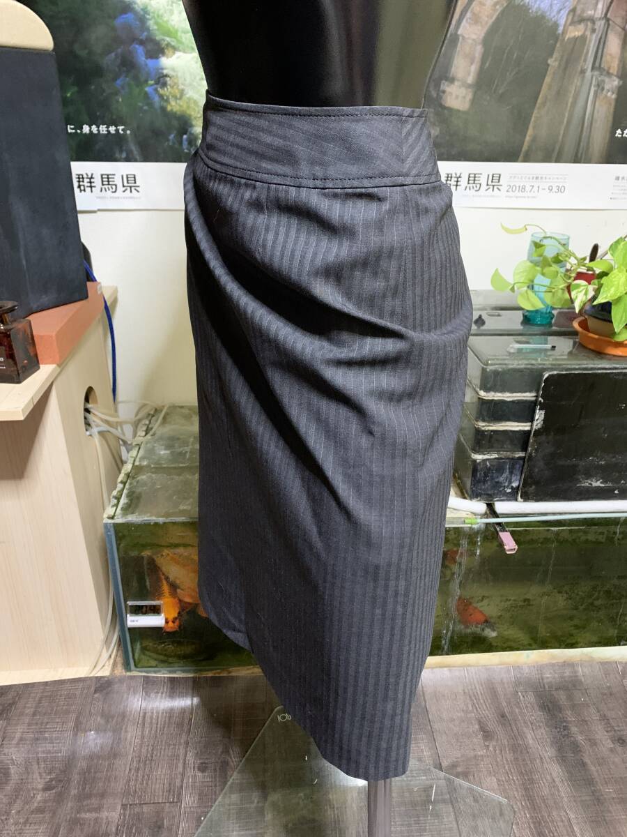 - S / OL セールスレディ オフィス 通勤 御用達 うす手 ウール混 シャドウストライプ スカート