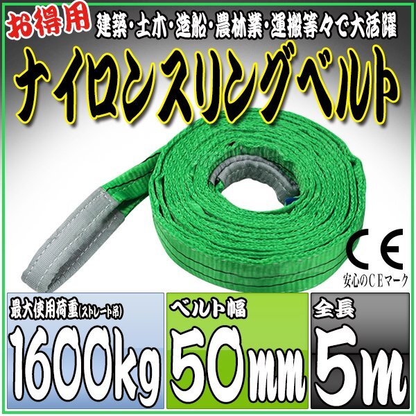 > スリングベルト 5m 幅50mm 使用荷重1600kg 1.6t 吊りベルト ベルトスリング [ナイロンスリング 吊上げ ロープ 牽引 運搬]