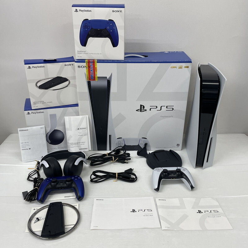 > TEI【現状渡し品】SONY PlayStation5 PS5 本体 825GB CFI-1000A01+コントローラー(青)+縦置きスタンド〈032-251029-TS-07-TEI〉