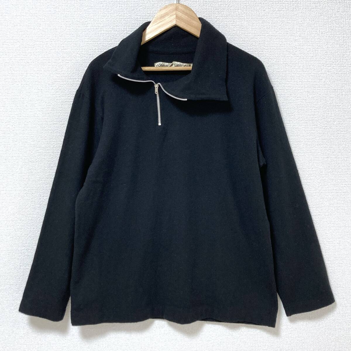 > 80s COMME des GARCONS 変形 ジップ ウール カットソー 無地 ブラック 黒 コムデギャルソン ニット セーター VINTAGE archive 5030183