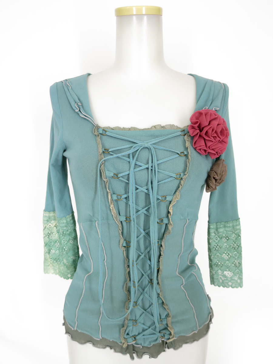 - Ozz On コサージュ付きメッシュチュールカットソー / オッズオン [B71272]