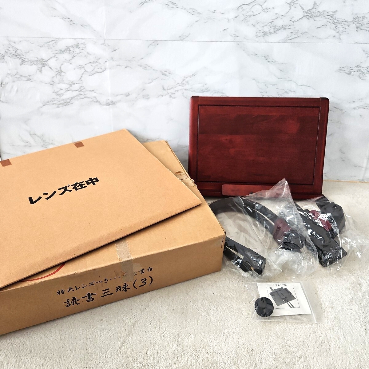 - 【新品未使用】読書三昧3 特大レンズ付き 木製書台 デットストック 購入価格14800円 パソコン、手芸にも