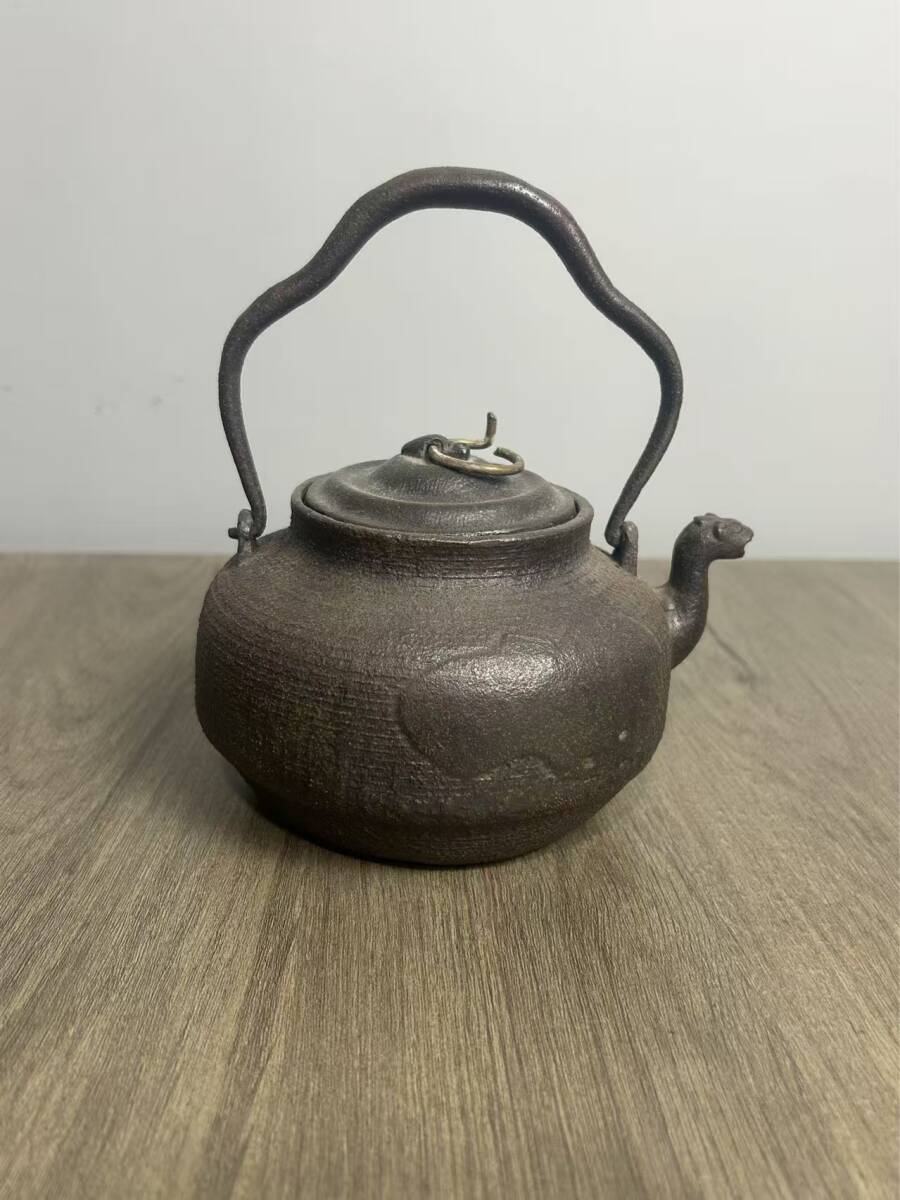 - 京都釜師獣口一字底鉄瓶 茶道具 湯沸 当時物 状態良好 11-3 水漏れございません 600ml A