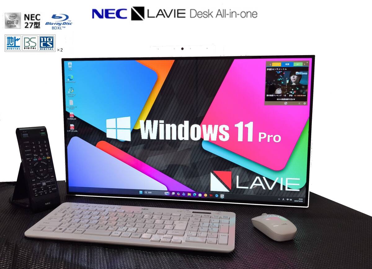 - Win11Pro! 27型(CSD)LAVIE【新品SSD 1TB(NVMe)&HDD 4TB】10世代Core-i7-10510U/メモリ32GB/3波W録/Blu-ray/AIエージェント/HDMI/Office
