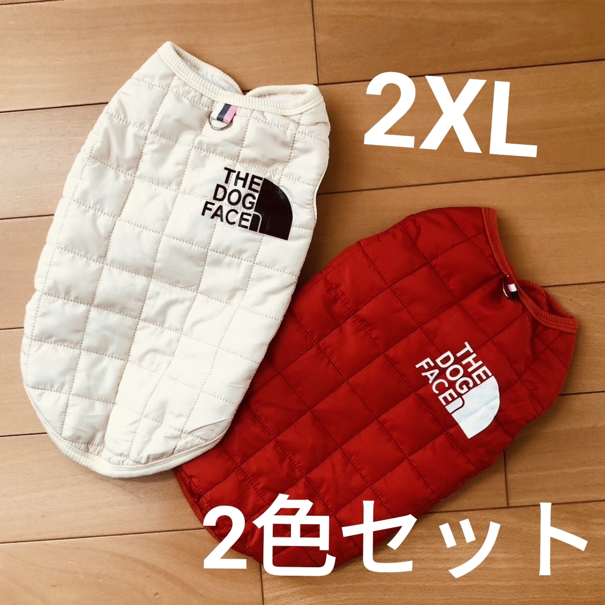 - 新品 犬服 2XLサイズ2色セットキルティングベスト前ボタン内側フリースリードをつけるリング付き