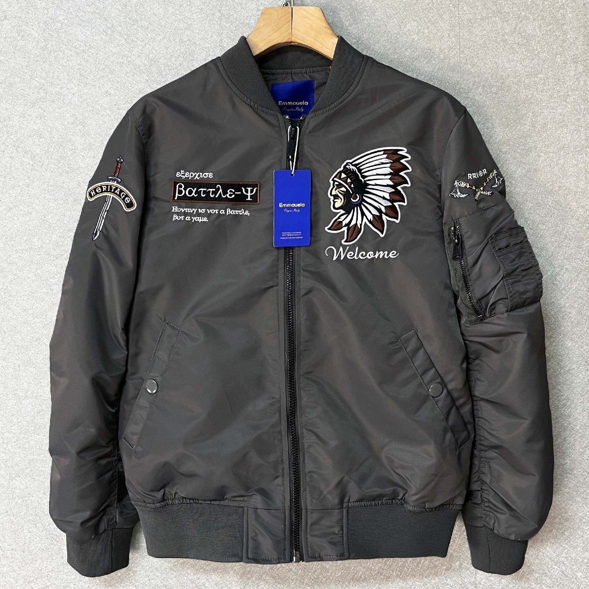 - 定番・フライトジャケット/MA-1 定価7万◆Emmauela・イタリア・ミラノ発◆快適 保温 INDIANS 豪華刺繍 個性 ブルゾン ジャケット 秋冬 L