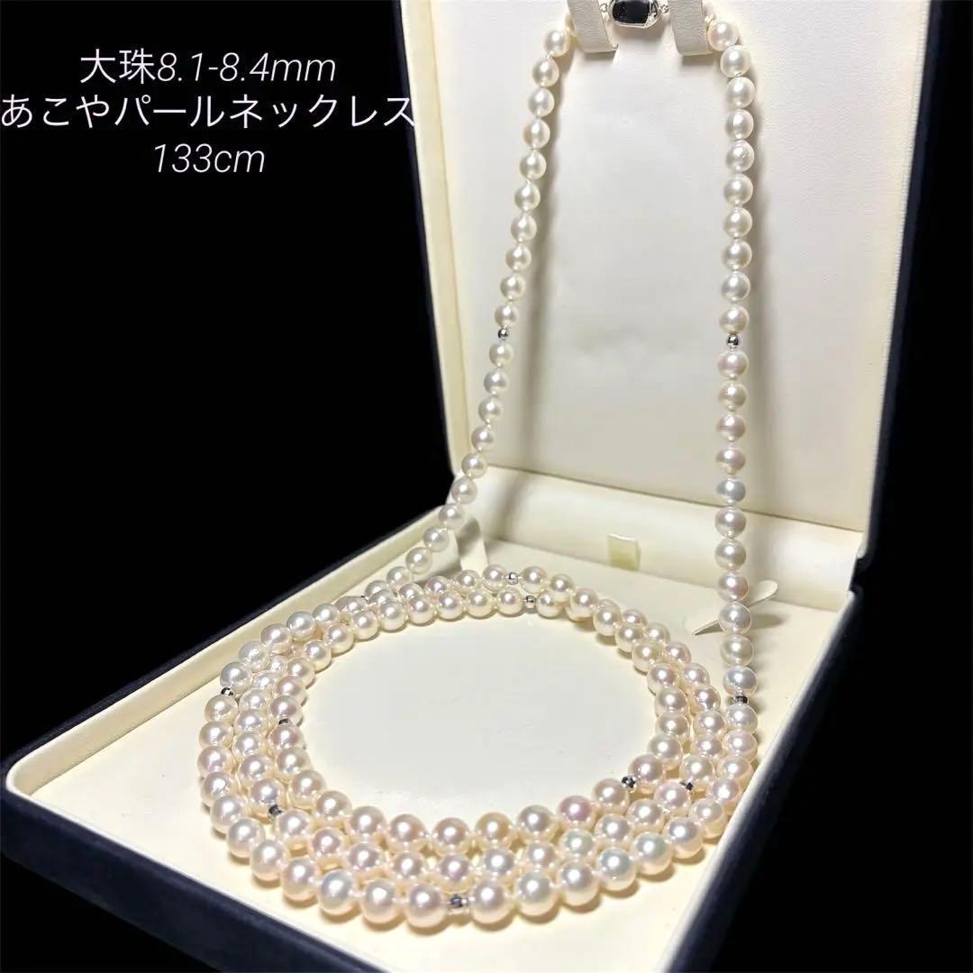 - 照り艶◎大珠ロング8.1-8.4mm 133cm ★あこやパール アコヤ本真珠 ロングネックレス シルバー