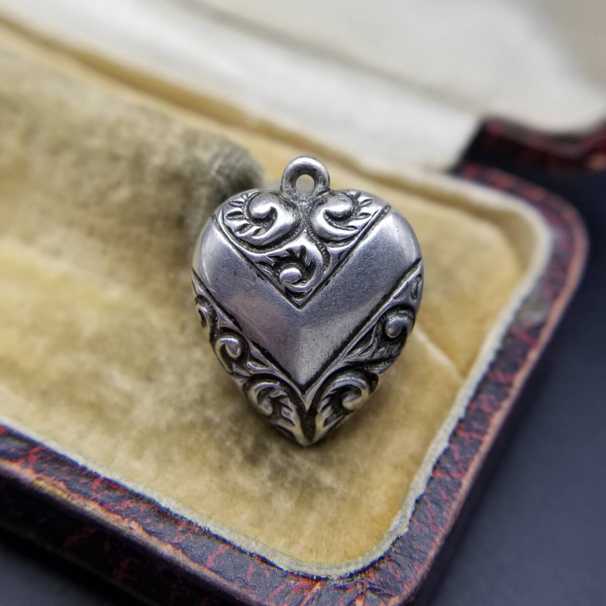 - WWII期 ヴィンテージ スウィートハートジュエリー 唐草模様 V字 チャーム 925 シルバー ペンダントヘッド 銀 リバーシブル Y25-E