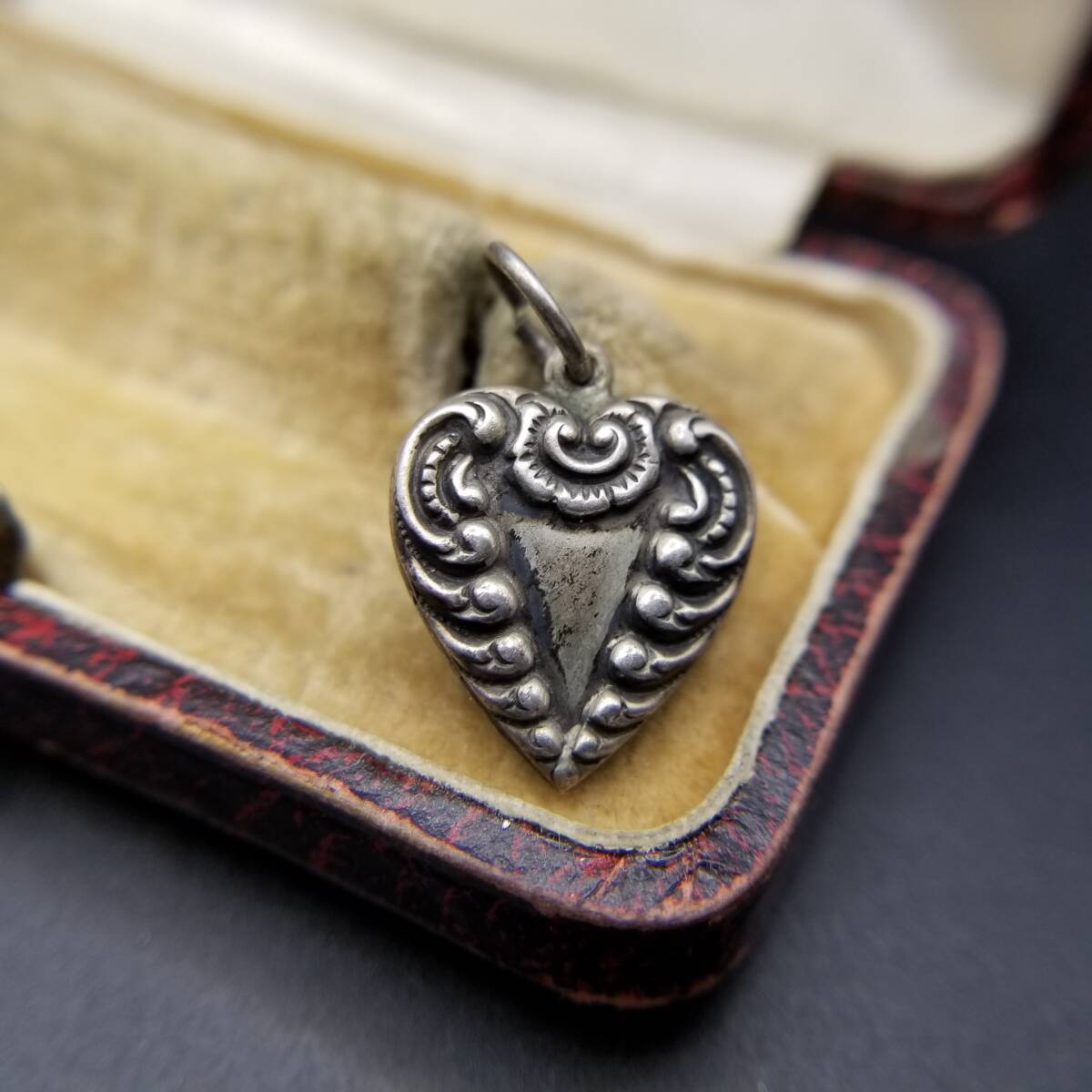 - WWII期 ヴィンテージ スウィートハートジュエリー アールヌーヴォー チャーム 925 ペンダントヘッド イニシャル彫金 J.W.R Y25-D