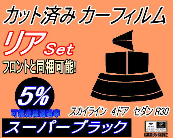 > カーフィルム スーパーブラック カット済み リアセット スカイライン 4ドア セダン R30 (s) スモーク ガラスフィルム HR30 FJR30 ER30 DR30