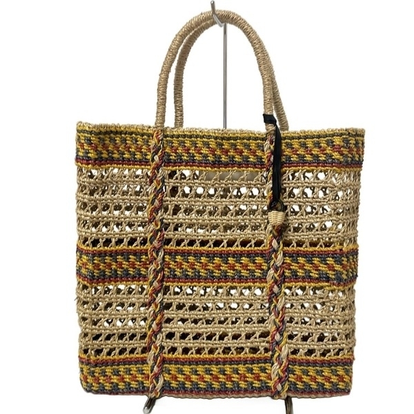 - マルシェ MARCHER トートバッグ - リネン ベージュ×ダークイエロー×黒 編み込み バッグ