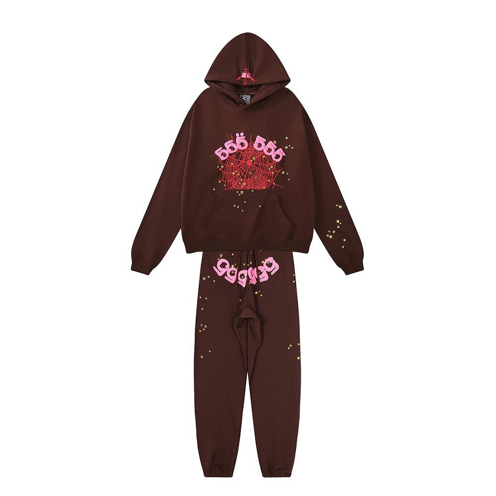 > SP5DER Spider 555 Web パーカー 上下セット トレーナー パンツ カジュアル セット ブラウン ユニセックス Mサイズ