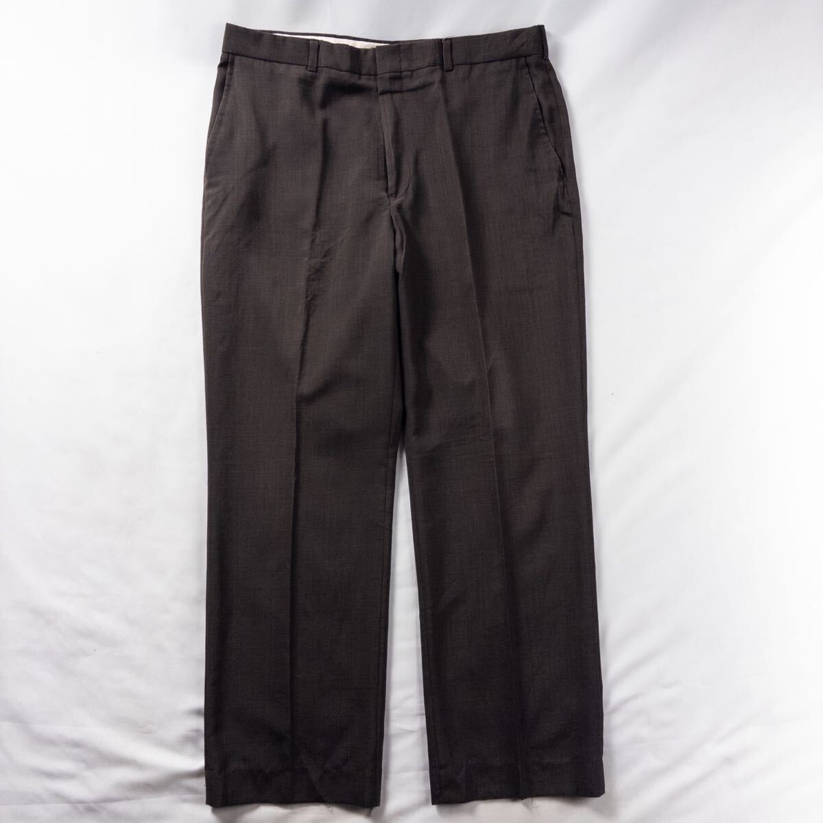 - US Vintage アメリカ製 80s TOWNCRAFT ウール ノータック ドレープ クラシック トラッド ブラウン ワイド ドレス スラックス トラウザーズ