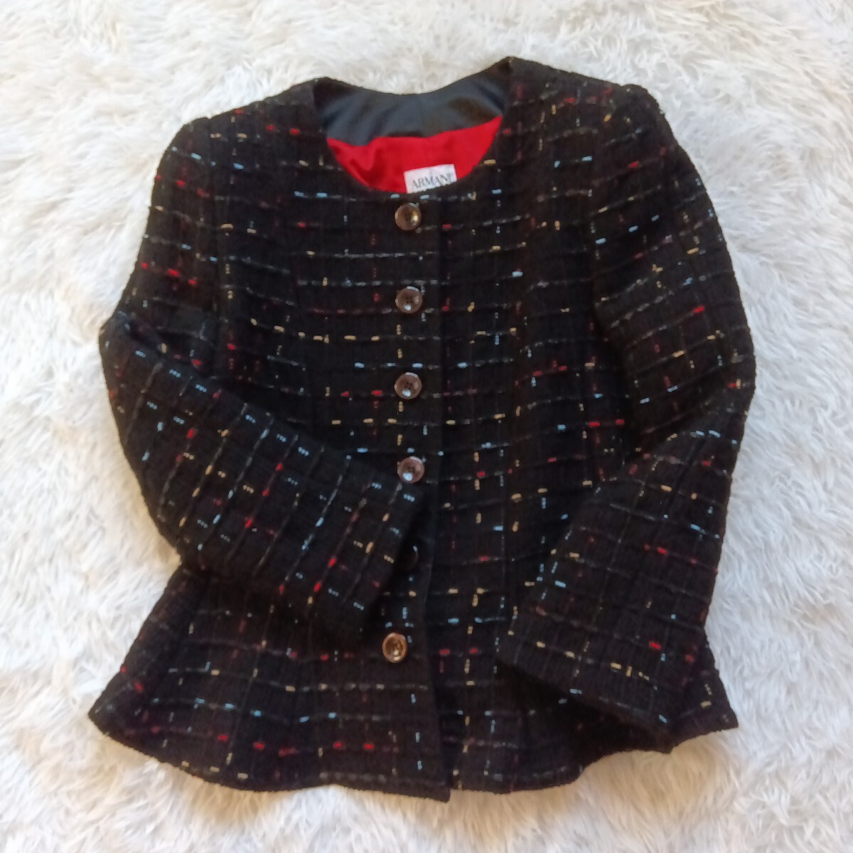 - アルマーニ コレツィオーニ/ARMANI イタリア製 ペプラムデザイン ツイード ジャケット:44/Lサイズ ブラック/黒&マルチカラー (志)