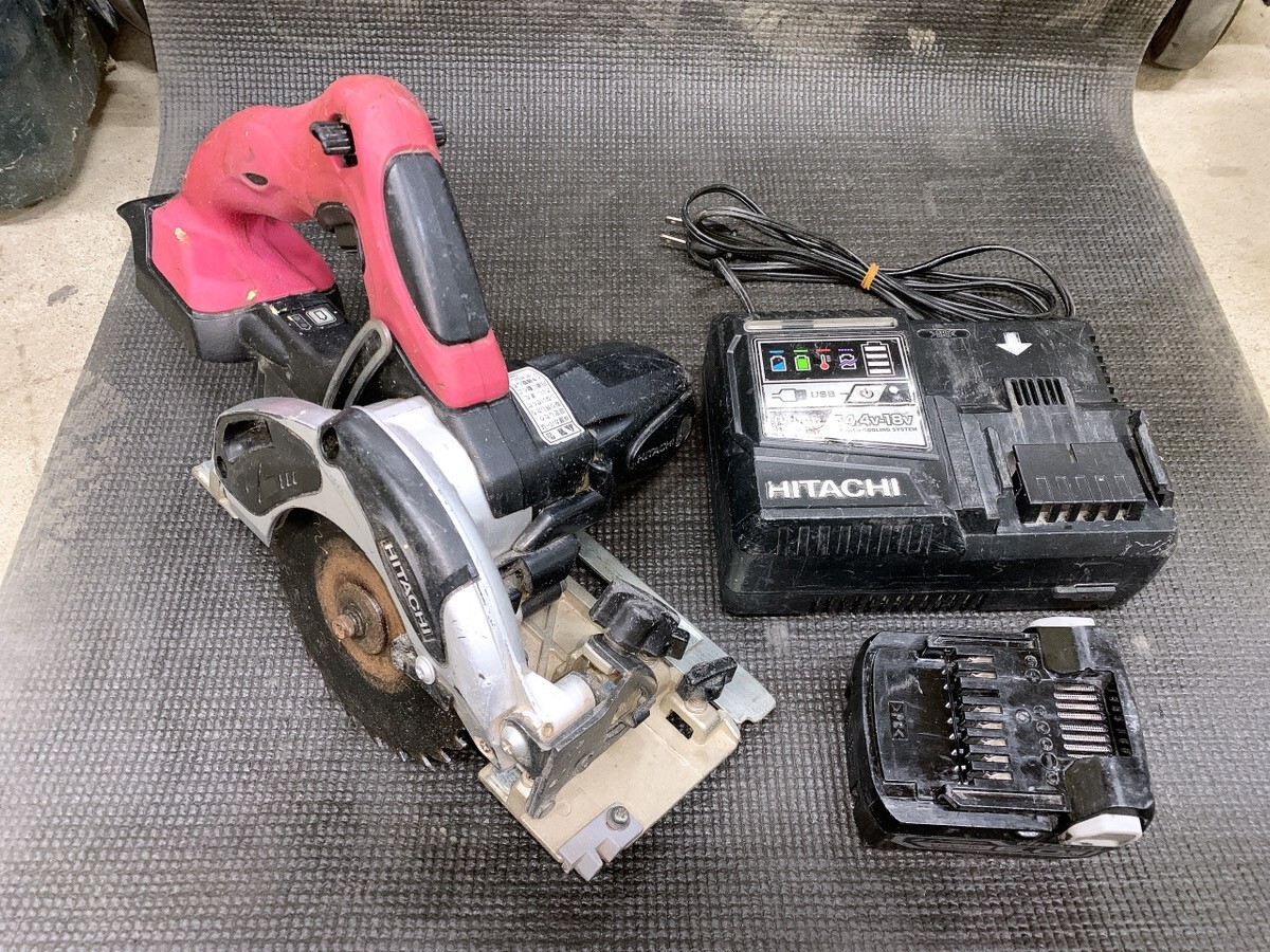 - 中古 動作OK 日立工機 現HiKOKI コードレス 丸のこ C14DSL 充電器 蓄電池 セット 2010年製 工具 DIY 電動工具 丸ノコ 1030こ1 E2 120 ゆ