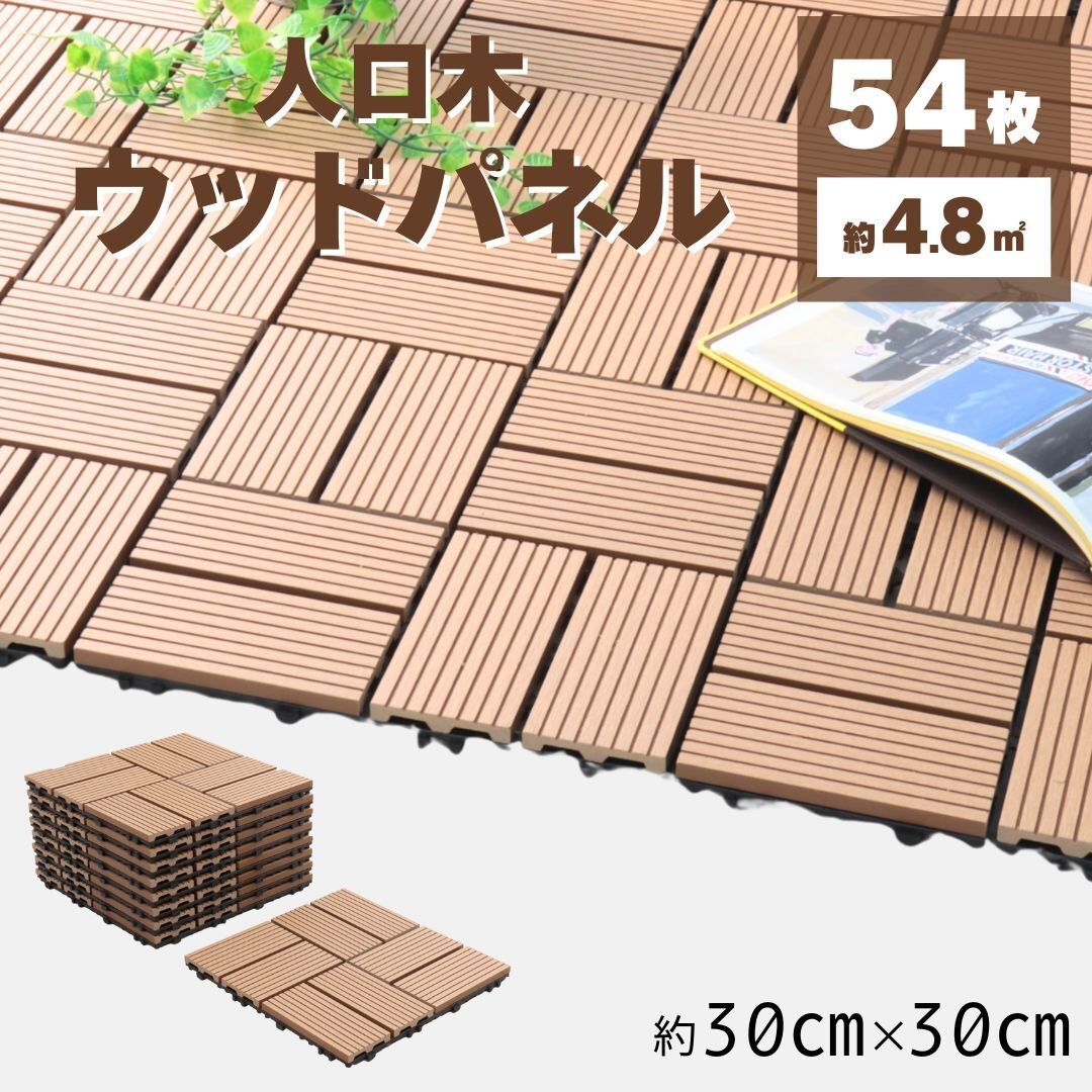 - 【チーク/交互タイプ/54枚セット】人工木 ウッドデッキ ウッドタイル ウッドパネル ベランダ バルコニー 腐らない リノベーション DIY 庭