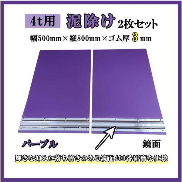 - 4t用 EVA泥除け パープル 鏡面ウエイト(400番研磨) 二山折り 幅500mm×縦800mm×ゴム厚3mm 2枚セット