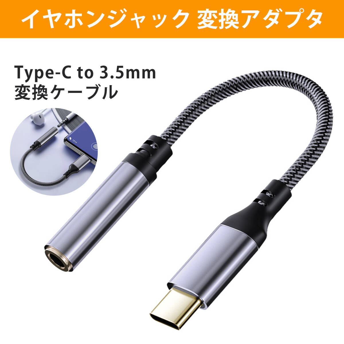 - イヤホンジャック 変換 タイプc type-c to 3.5mm 耐折曲・防爆設計 アルミニウム合金 高耐久 広互換 即挿即用;J6241;