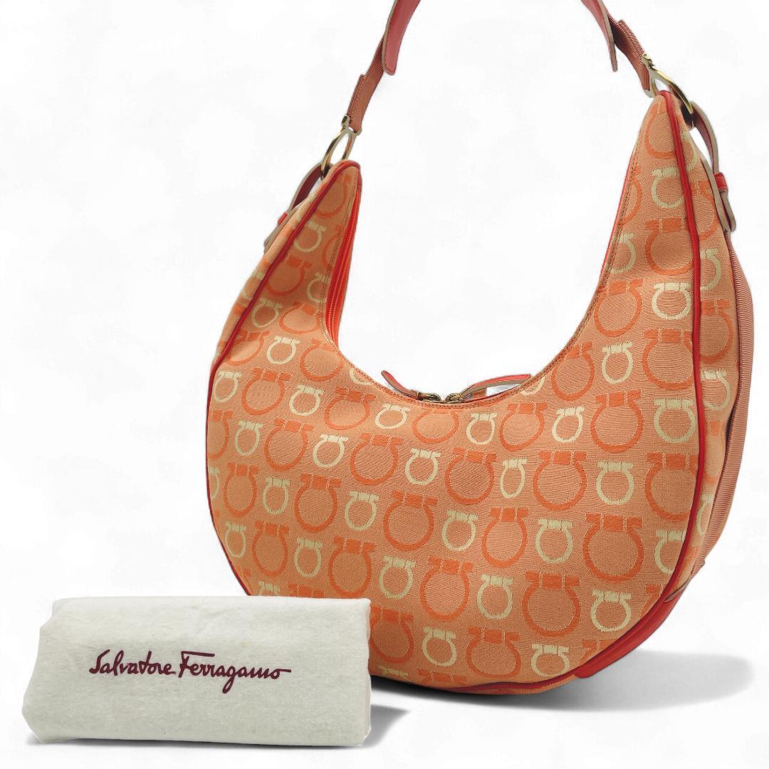 - 美品 Ferragamo ワンショルダーバッグ キャンバス ガンチーニ ホーボー