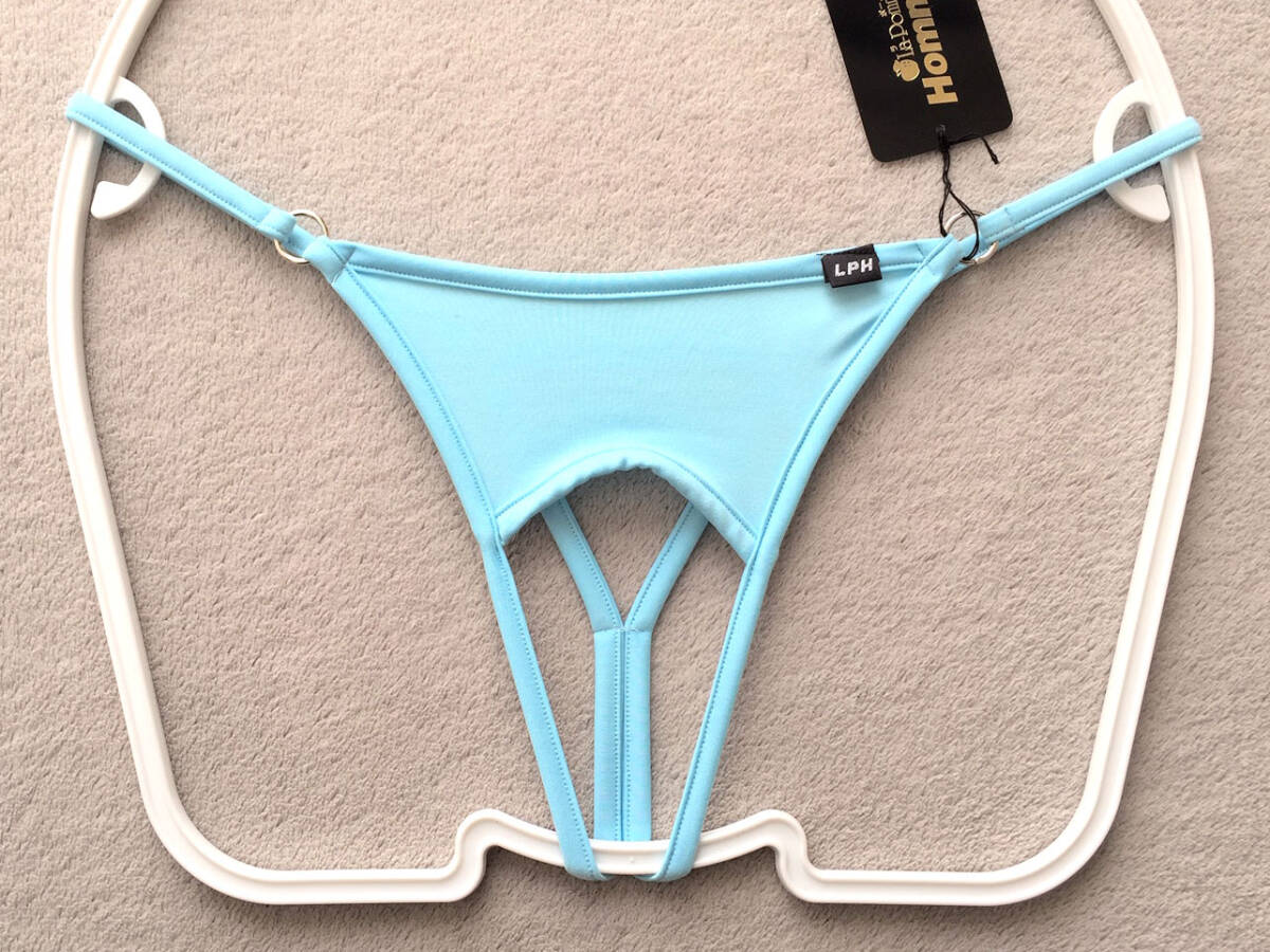 - 【ラ・ポームオム/La-Pomme Homme】完全露出!丸出しフロントオープン★リング&なめらかストレッチ★浅履きTバック/サックス♪新品/日本製