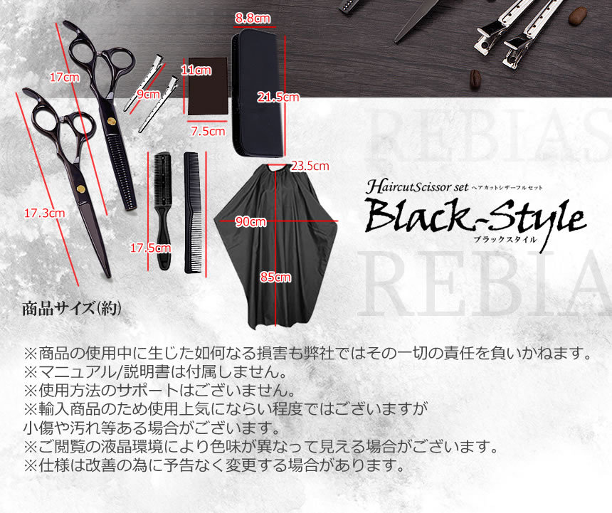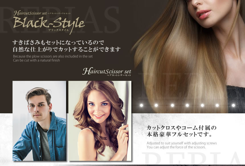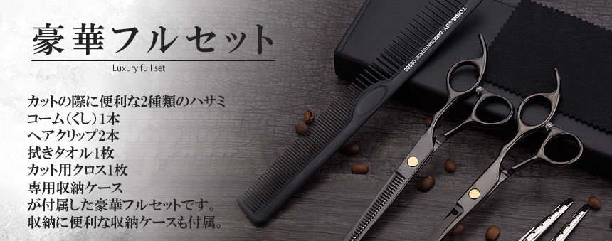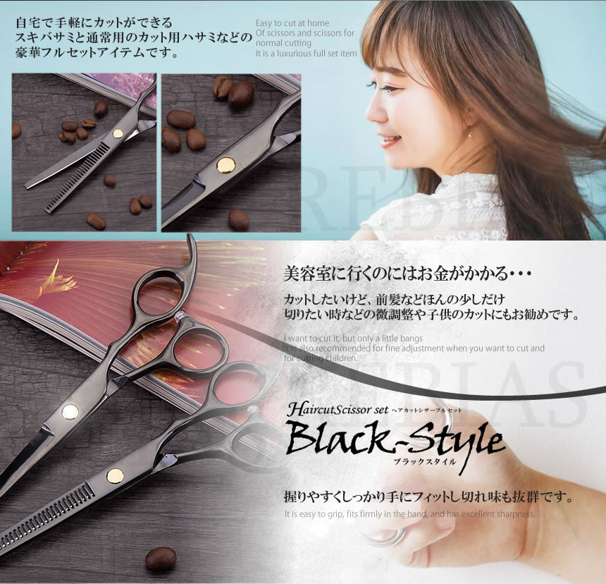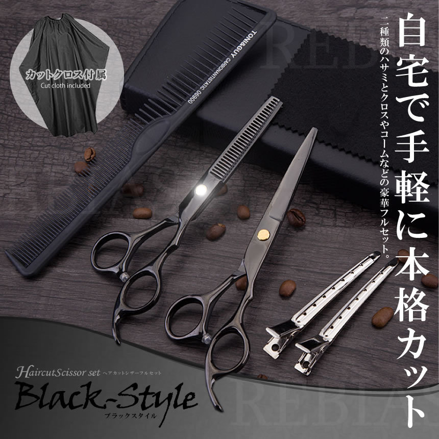 - 送料無料 ヘアカットシザーフルセット ブラックスタイル ケース付き ハサミ セニングシザー くし 櫛 ヘアピン すきばさみ
