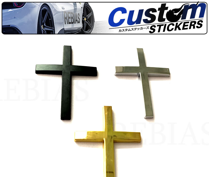 - 送料無料 十字架 エンブレム 【ブラック】 カーステッカー 立体 3D デカール バイク 車 カスタム シール 汎用