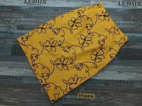 - ALSO レディース 日本製 フラワー刺繍 裏地付き バックボタン 膝丈 スカート 60 黄色黒