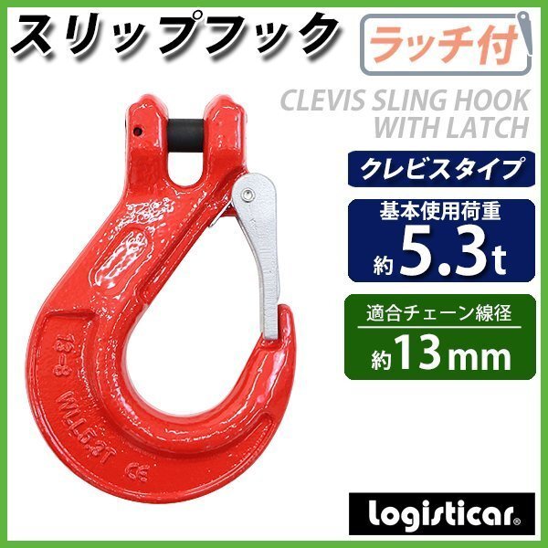 - 送料無料 スリップフック スリングフック ラッチ付 クレビスタイプ ピンタイプ 使用荷重約5.3t 約5300kg G80 鍛造 フック 吊り具