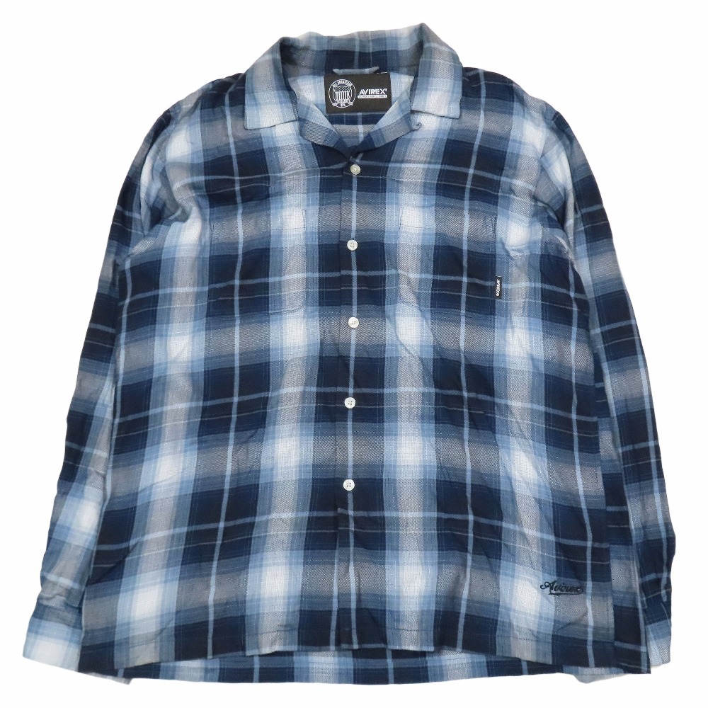 > 新品同様 25SS AVIREX アヴィレックス OMBRE CHECK SHIRT NYC チェック オンブレシャツ 長袖 オープンカラー カットソー XL ブルー