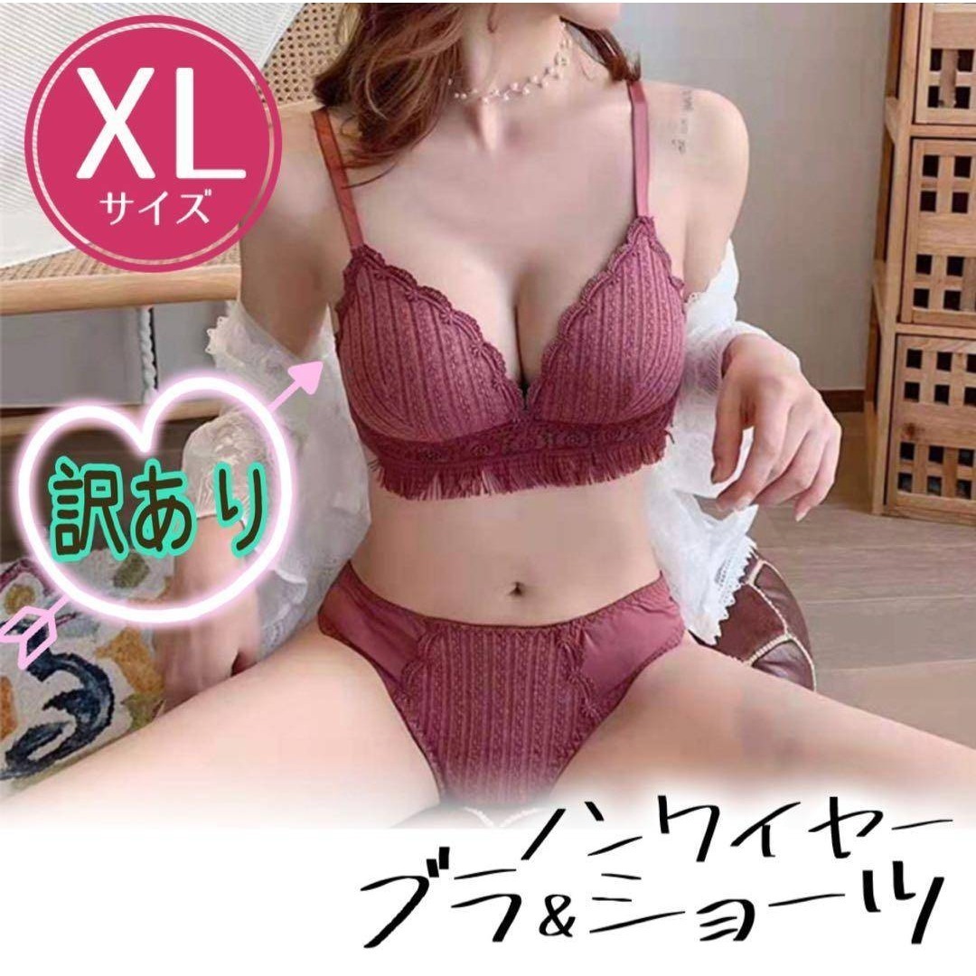 - 訳あり 新品 レディース ノンワイヤー ブラ ショーツ セット XL 美胸 r