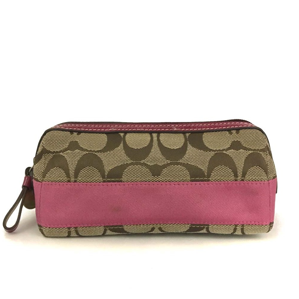 - 1円 美品 COACH コーチ シグネチャー 40025 キャンバス レザー ポーチ コスメポーチ マルチケース ベージュ /JP0293
