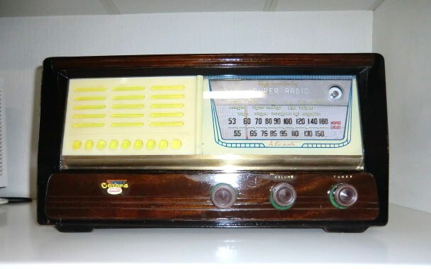 * 整備としては、キャビネット(木製の外箱)の塗装を剥離し欅色のウレタンニスを数回塗装して仕上げました。アクリル製のフロントグリルとダイアル板は特殊洗剤で汚れを落としコンパウンドで磨きオリジナルに近い状態に仕上げました。ダイアル板の裏板のグレー色の波板アクリル板は色褪せもなく綺麗な状態なので洗浄後、コンパウンド磨きしそのまま使用しました。