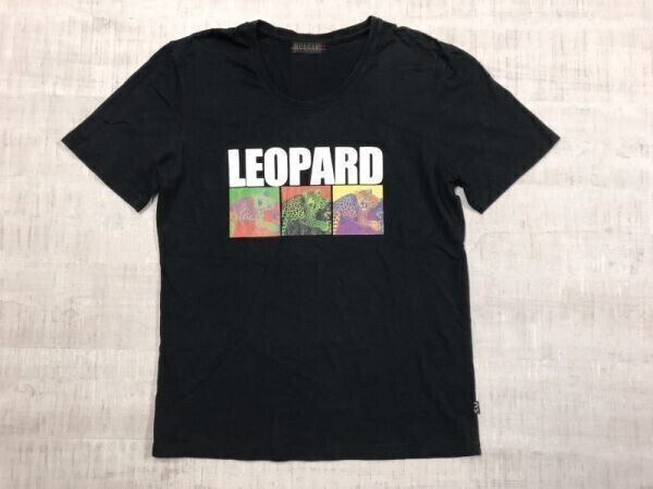 - MORGAN HOMME モルガンオム ネオお兄系 Y2K 00's レオパード ヒョウ アニマル ロゴプリント オールド 半袖Tシャツ メンズ L 黒