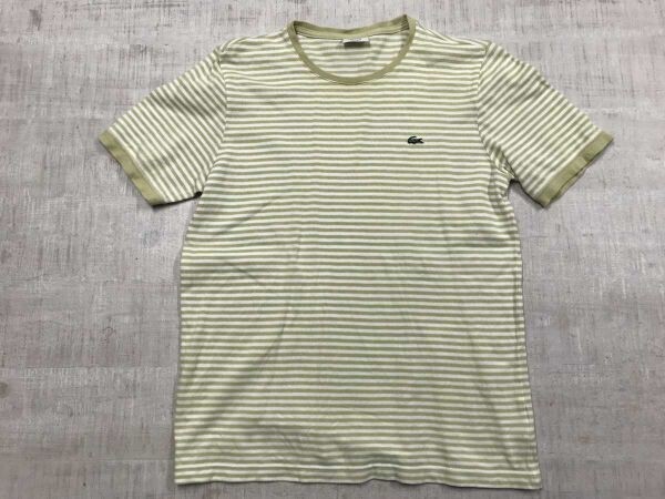 > ラコステ LACOSTE クリーンボーイ グランパコア レトロ スポーツ ワンポイント ロゴ刺繍 半袖Tシャツ メンズ 日本製 ボーダー柄 3 カーキ系