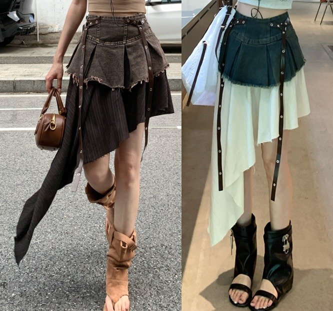 - スカート アシンメトリー フリル 切り替え スリム 着痩せ XL グレー