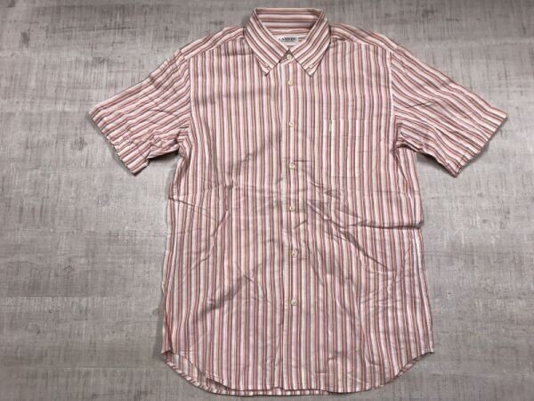 > ランバン LANVIN オールド レトロ トラッド 古着 マルチストライプ ボタンダウン 半袖ドレスシャツ メンズ M ピンク系