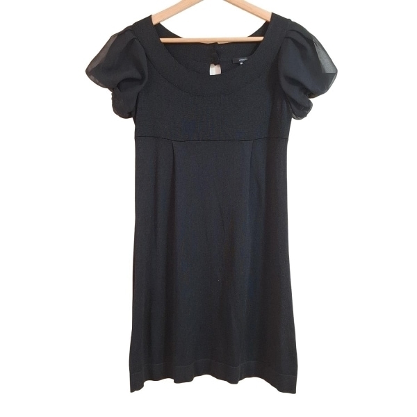 > アキコオガワ AKIKO OGAWA. サイズ36 S - 黒 レディース クルーネック/半袖/ミニ/ニット ワンピース