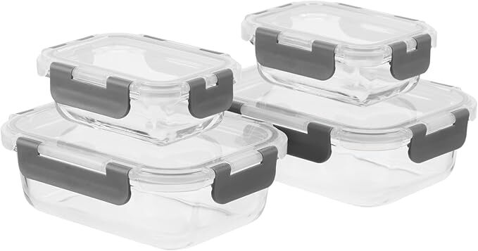 - 耐熱ガラス 保存容器 4個セット ガラスタッパー 密閉容器 電子レンジ対応 オーブン食洗機OK 漏れ防止 蓋付き BPAフリー グレー