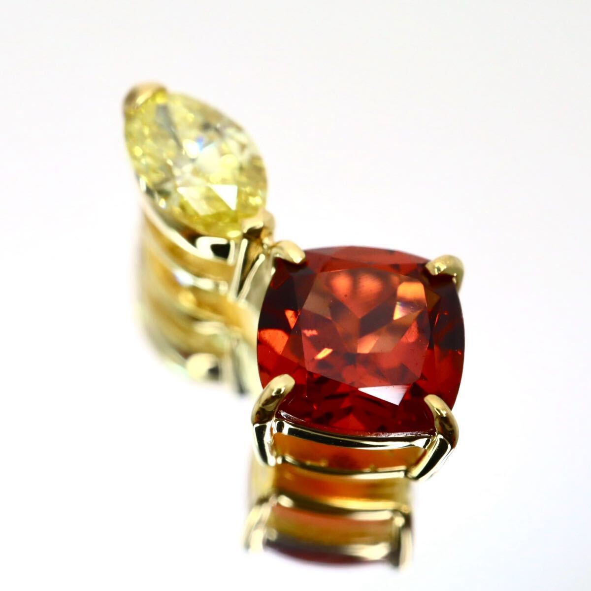 - K18!!1.11/0.42ct!!鑑別書付き!!◆天然イエローダイヤモンド/天然ガーネットペンダントトップ◆N 約1.2g ネックレス チャーム EB7/EC2 W432