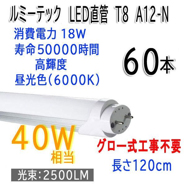 - ■je048■(2)ルミーテック LED直管蛍光灯 T8 40W形 昼光色 A12-N 60本【シンオクH】