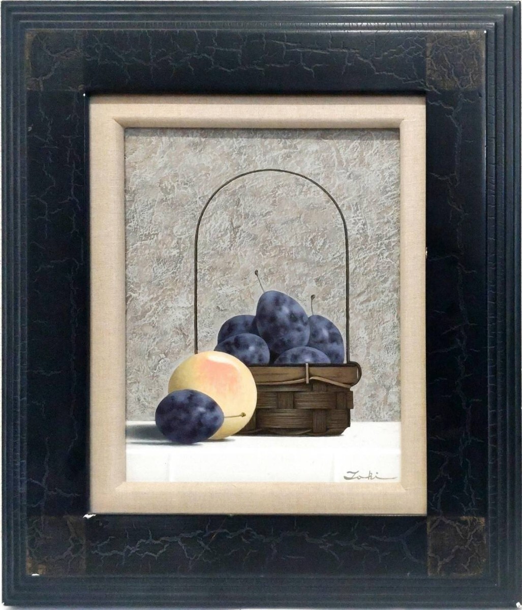 - 『真作 油彩/中央美術協会会員【滝沢直次】「プルーンと桃」裏書 直筆サイン/額縦45cm横40cm』埼玉県熊谷出身 肉筆絵画 リアリズム 写実