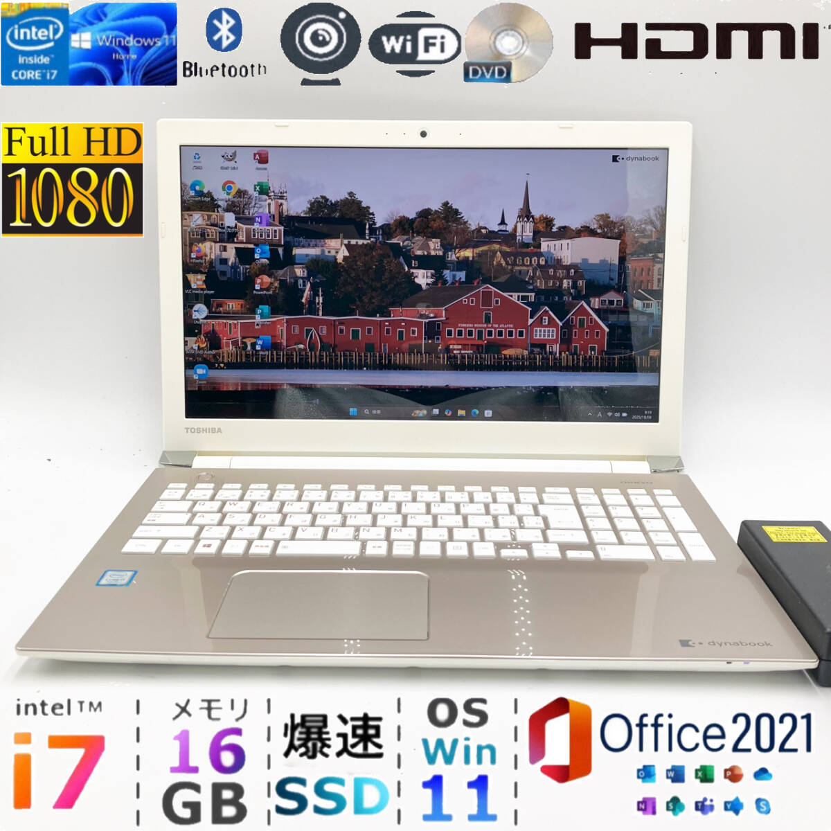 > フルHD☆ハイエンドi7【メモリ16GB+新品SSD512GB/Core i7-7500U】Win11/Office2021/Bluetooth/Webカメラ/Wi-Fi/人気東芝ノートパソコン
