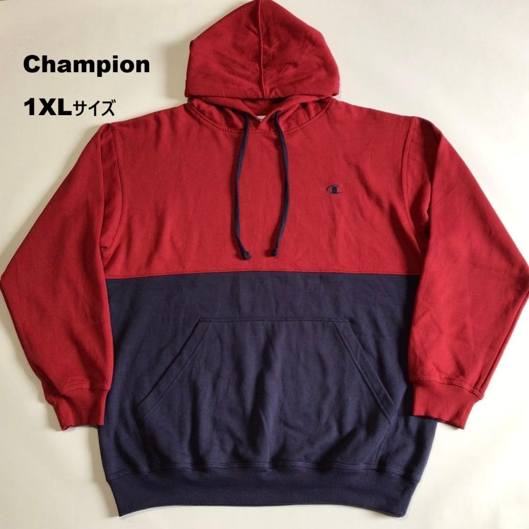 - ★Champion ツートンパーカー 赤/紺 1XL 美品