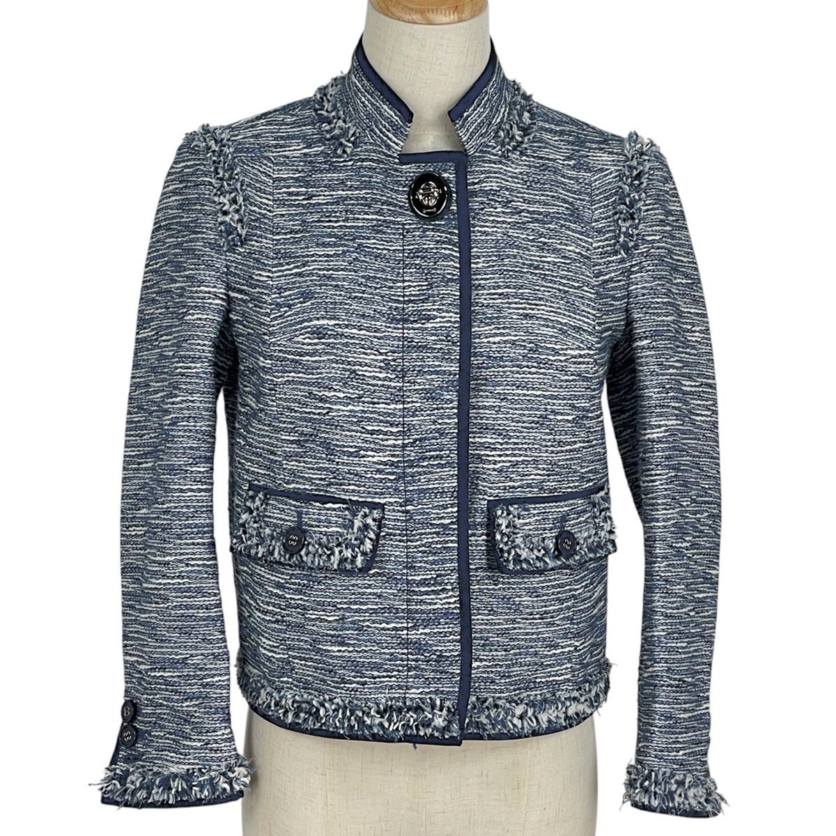 - コーチ COACH ノーカラー ジャケット ツイード アウター その他ジャケット ブルー レディース 【中古】