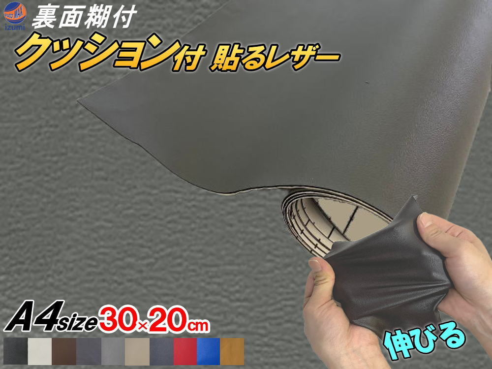 > クッション付 貼るレザー (A4) 灰 幅30cm×20cm 伸びる ウレタンスポンジ付 糊付き 革 革シート 合皮シート レザー生地 本革調 グレー 0