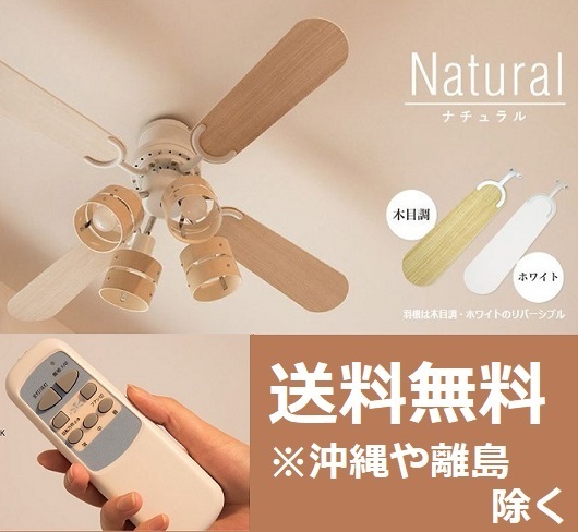 - リモコンタイプ シーリングファン 4灯 ホワイト/ナチュラル木目調 新品 送料無料