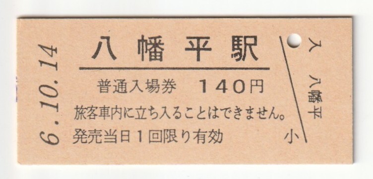 - 平成6年10月14日 花輪線 八幡平駅 140円硬券普通入場券(日付印刷)