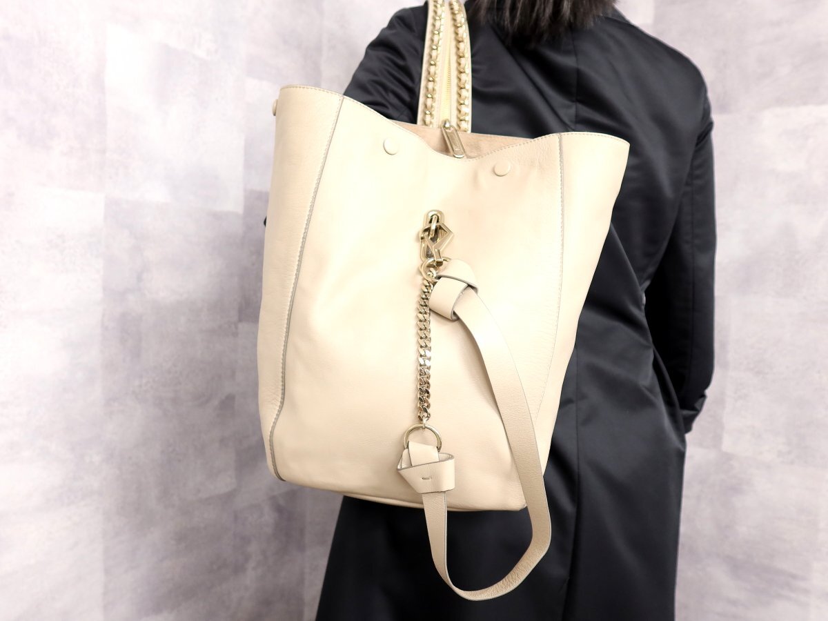 > ●超美品●JIMMY CHOO ジミーチュウ●ECHO エコー●カーフ レザー 本革●2way バックパック●ベージュ●ゴールド金具●B5 収納●Js61978
