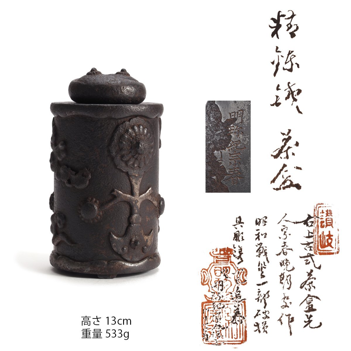 - 【夢工房】明珍 宗春 作 精錬鉄 茶壷 紀宗春 補作 箱書 ( 紀宗春在銘 ) 重量533g 高さ13㎝ PE-088