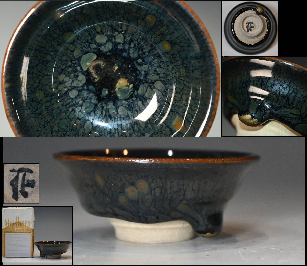 - 真贋保証■北一明 作■ 宋時代写し 油滴天目盃 乳頭 酒盃 箱無 長野県飯田市生 耀変天目 窯変 酒器 酒呑 酒杯 猪口 ぐい呑